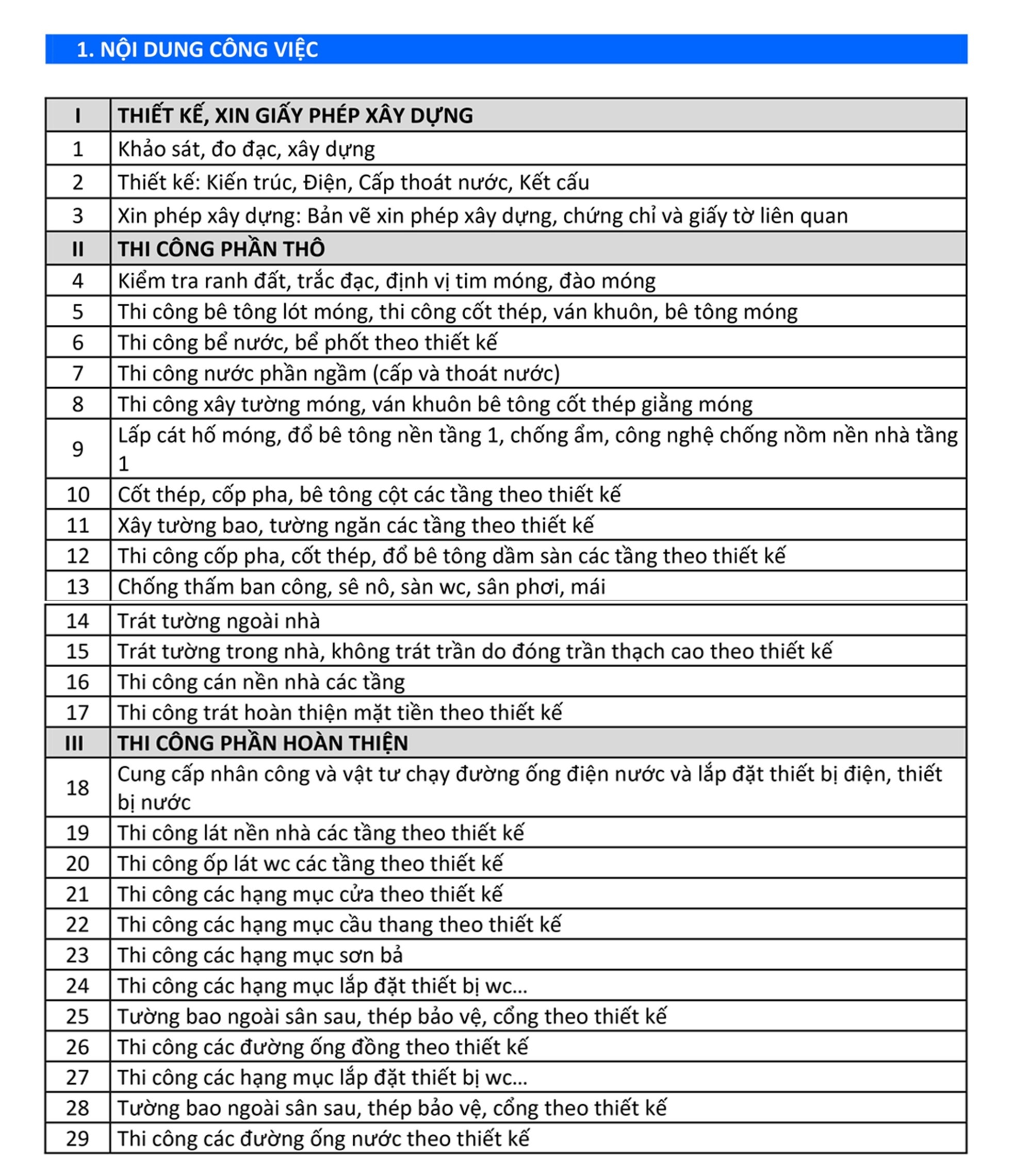Dịch vụ xây phần thô của Xây Dựng Song Đỗ bao gồm những gì?